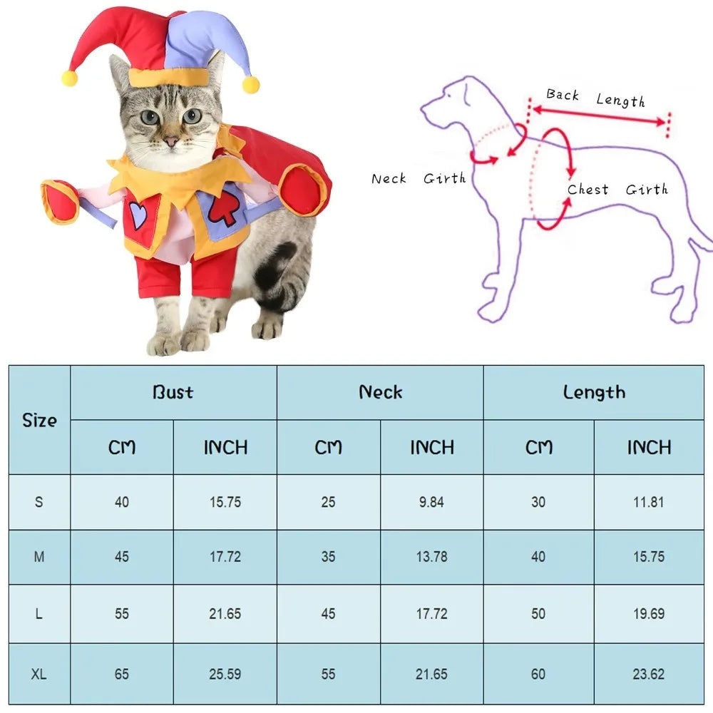 Bring the laughs this season! This clown/joker outfit is perfect for dogs and cats at Halloween, Christmas, or cosplay events. Lightweight, comfy, and full of colorful charm, it turns your furry friend into the life of the party.